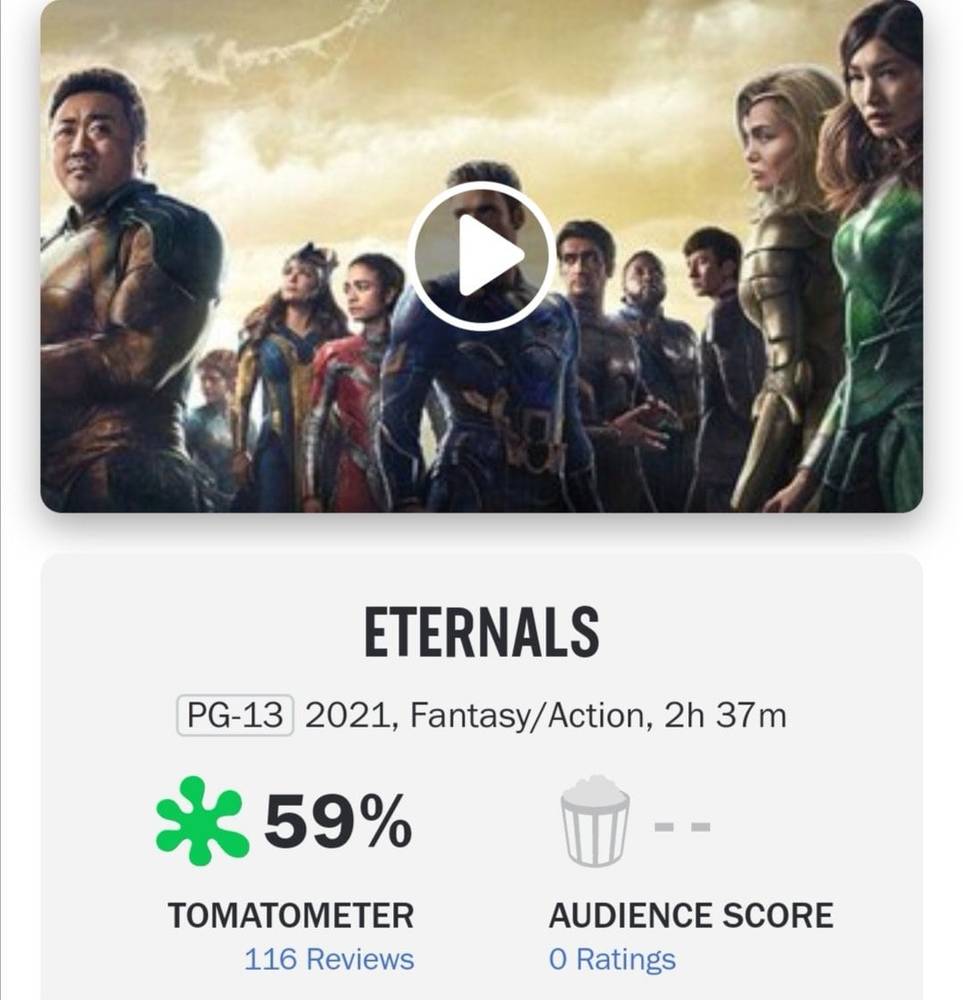 The Eternals score on Rotten Tomatoes is an interesting data point but it doesnt necessarily mean a great deal.